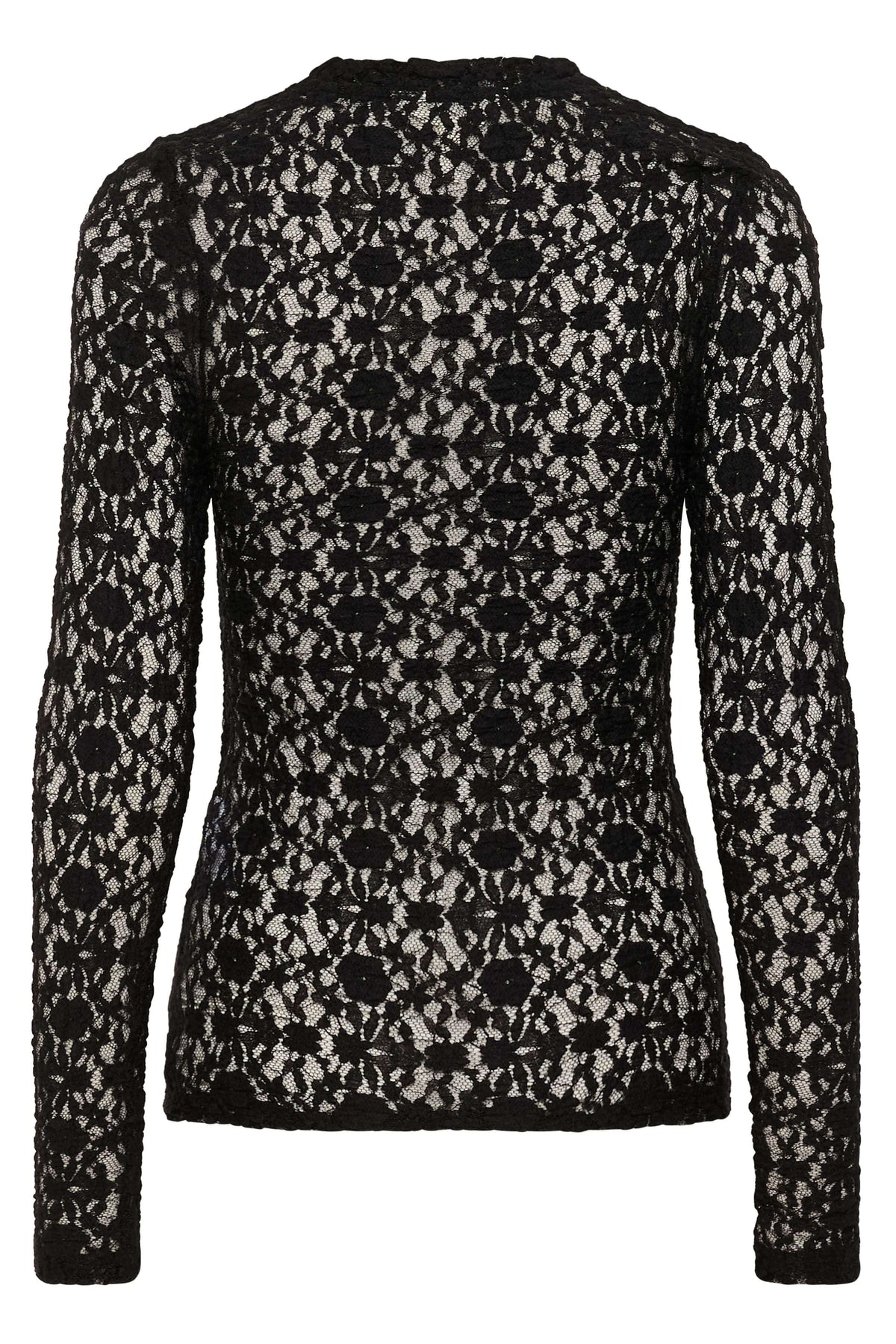 Description : Ce chandail en dentelle transparente incarne l’élégance et la féminité. Sa coupe ajustée et sa texture délicate offrent une allure raffinée et sophistiquée. Idéal pour les superpositions, il se porte facilement sous un veston ou avec un pantalon habillé pour un look chic et moderne.