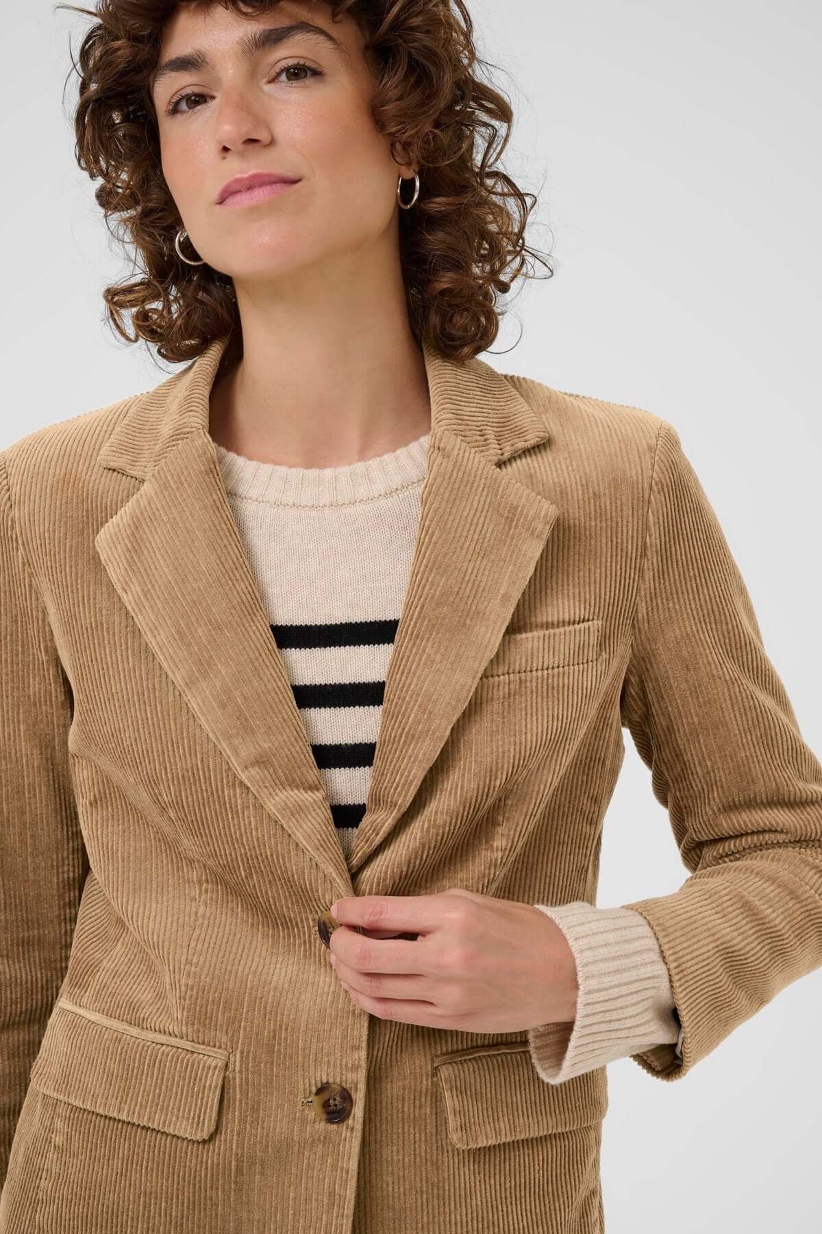 Description: Ce veston en velours côtelé apporte une touche raffinée et rétro à votre garde-robe. Sa coupe ajustée et sa texture riche en font une pièce à la fois élégante et confortable. Conseil style : portez-le avec un jean foncé pour un look chic décontracté ou avec un pantalon habillé pour une allure plus sophistiquée.