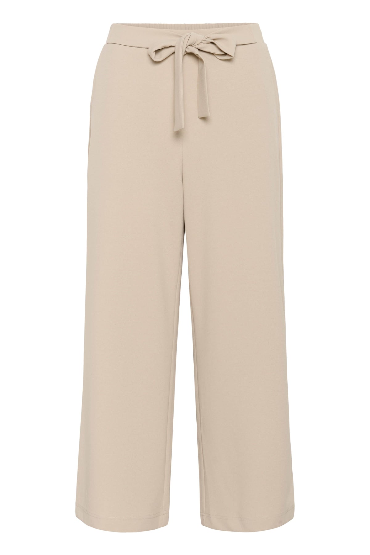 Pantalon jambe large Phoebe avec ceinture intégrée, couleur beige, pour un look élégant et polyvalent.