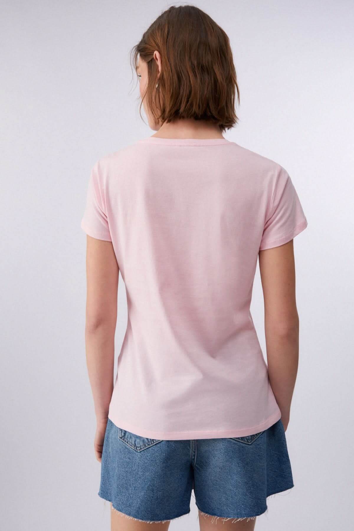 This T-shirt reimagines a wardrobe staple with a modern, feminine twist. Its comfortable fit and soft fabric ensure a comfortable feel all day long. Easy to style, it adds a casual yet stylish touch to everyday outfits.