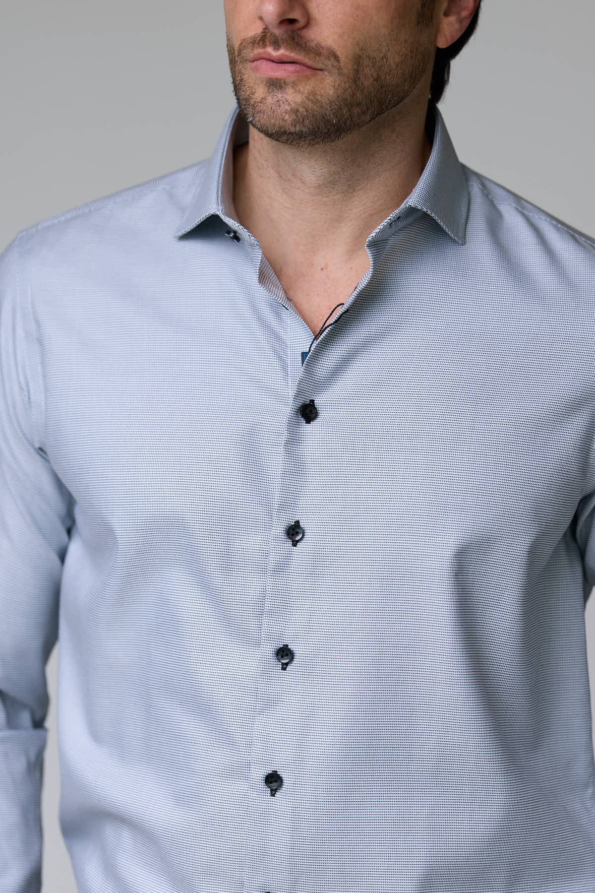 Description: Long-sleeved shirt with a refined micro-pattern, offering the perfect balance between elegance and comfort. Its Fit fit highlights the silhouette while allowing for great freedom of movement. Ideal for the office or a chic occasion, it pairs easily with dress pants or chinos.