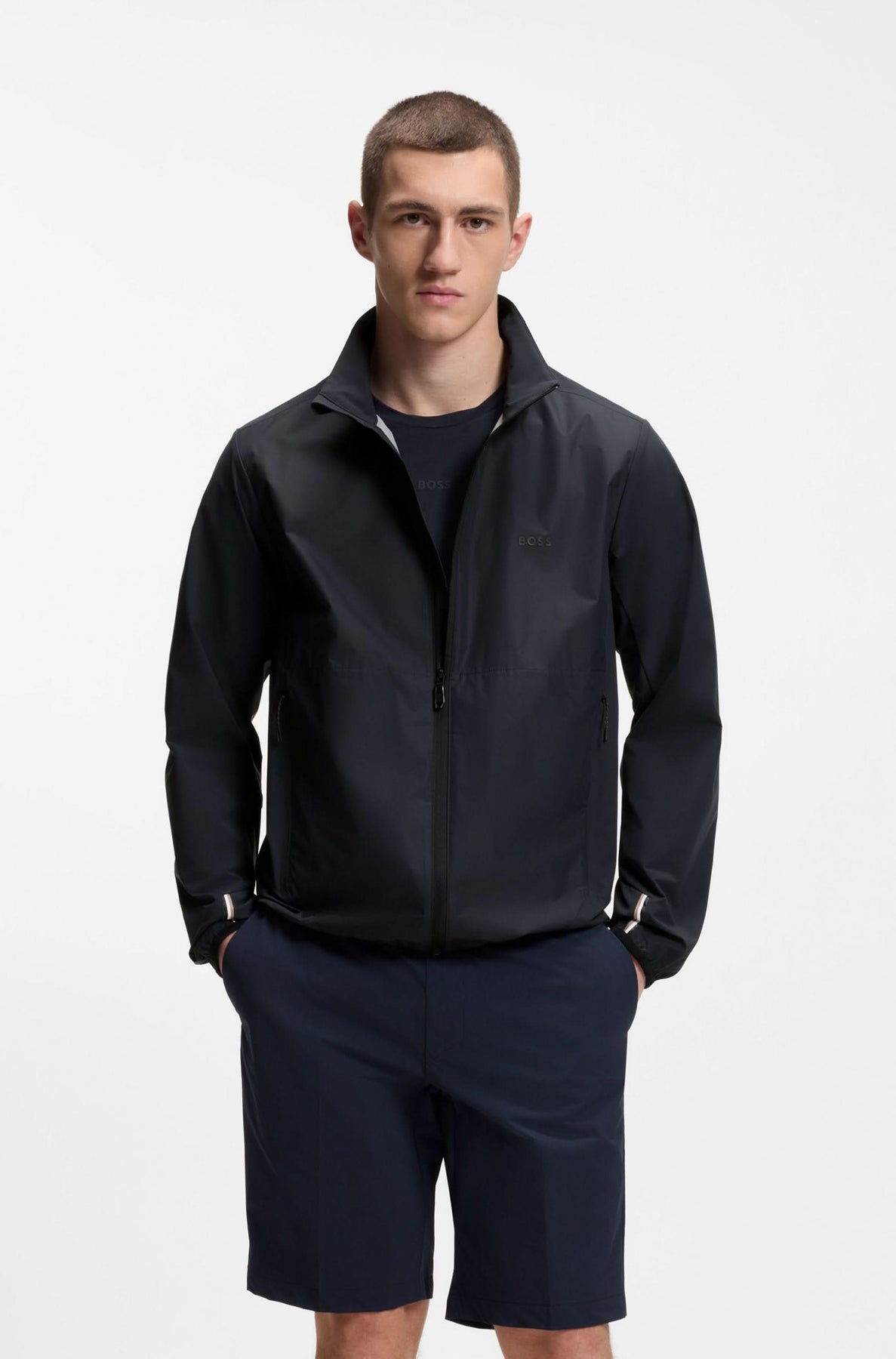 This lightweight jacket offers a modern and functional silhouette that’s ideal for mid-season wear. Its sleek design and zip closure ensure comfort and practicality for everyday use. Versatile, it elegantly complements a casual or athletic outfit.
