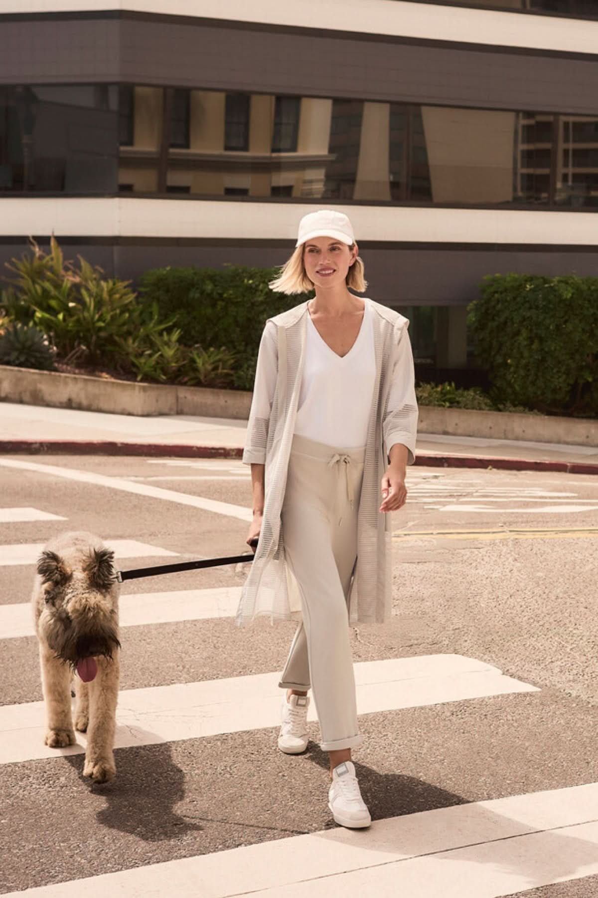 Description: These straight-leg pants feature a sleek, contemporary design, perfect for everyday wear. Their elastic waistband with an adjustable drawstring ensures optimal comfort all day long. Easy to style, they fit seamlessly into a versatile, modern wardrobe.