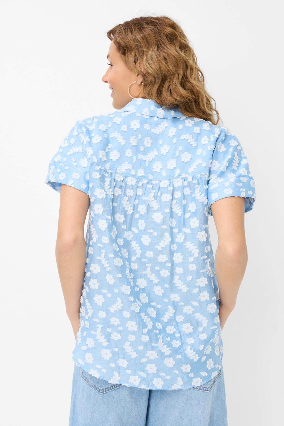 Description : Découvrez la légèreté de l'été avec la blouse VIV. Sa silhouette oversize confère à votre tenue une élégance naturelle. De délicats motifs floraux tissés se marient avec art aux détails élégants, sublimés par des boutons et un empiècement aux épaules. Les fronces soulignent la féminité tout en offrant une grande liberté de mouvement. Idéales pour les températures chaudes.