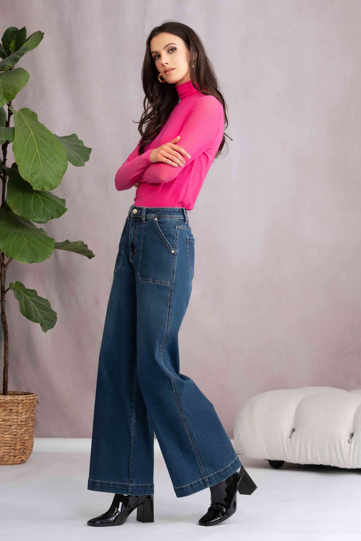 Description: Ce jean à jambes larges mise sur un style décontracté et moderne, rehaussé par des poches plaquées à l’avant pour une touche utilitaire. Sa taille haute allonge la silhouette tout en assurant un confort optimal grâce à sa coupe ample. Conseil style : portez-le avec un haut ajusté ou rentré pour mettre en valeur la taille et équilibrer le volume des jambes.