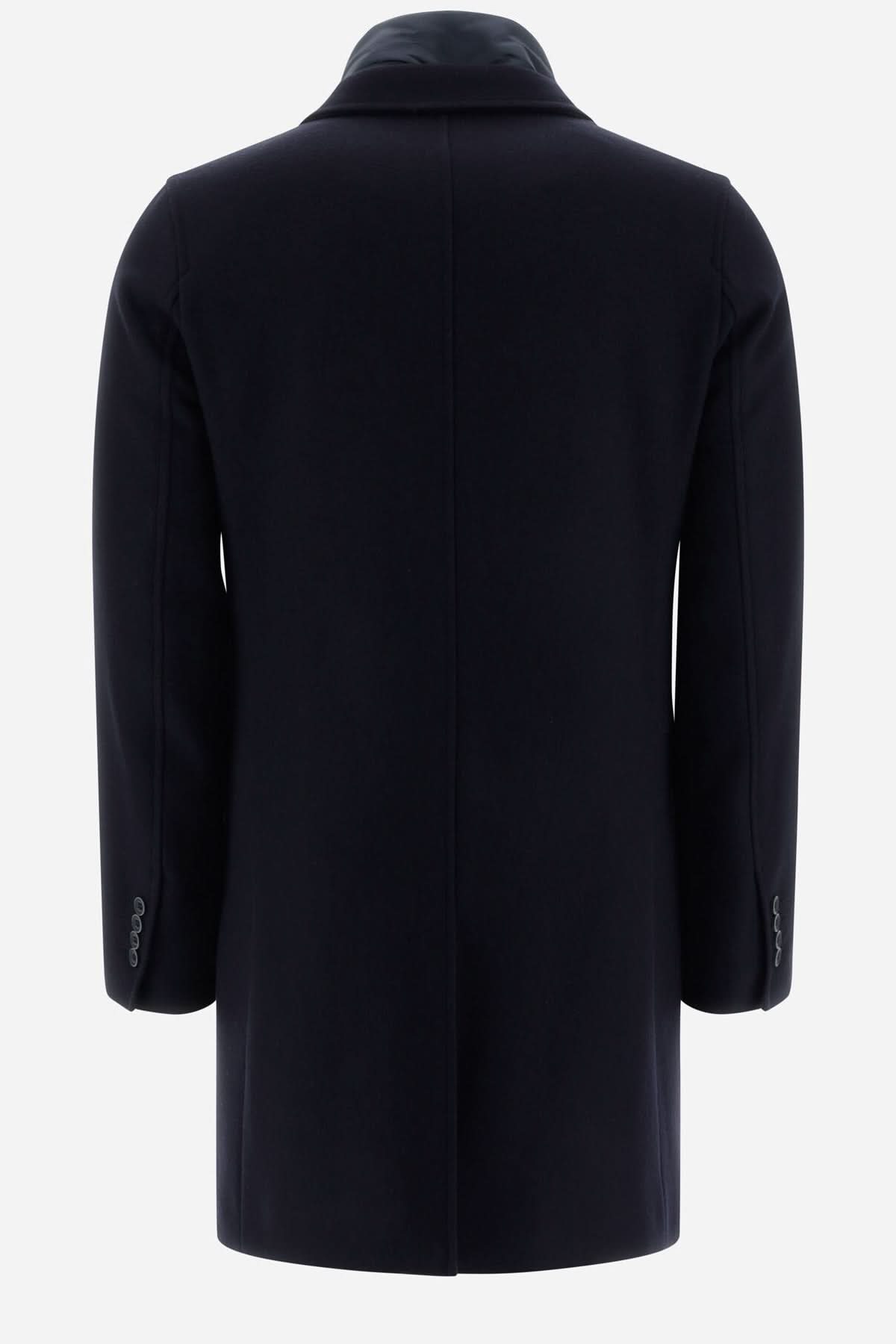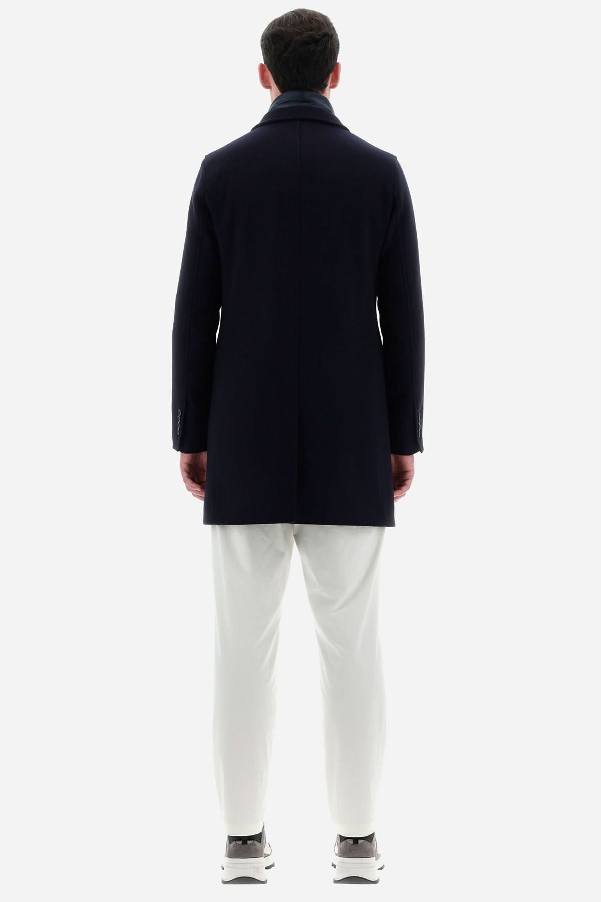 Manteau en laine Diagonal Herno, vue arrière, bleu, col matelassé, design italien, coupe étroite.